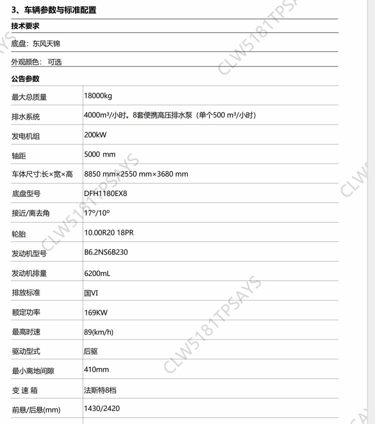 东风天锦应急排水抢险车
