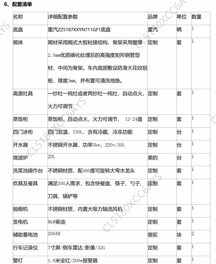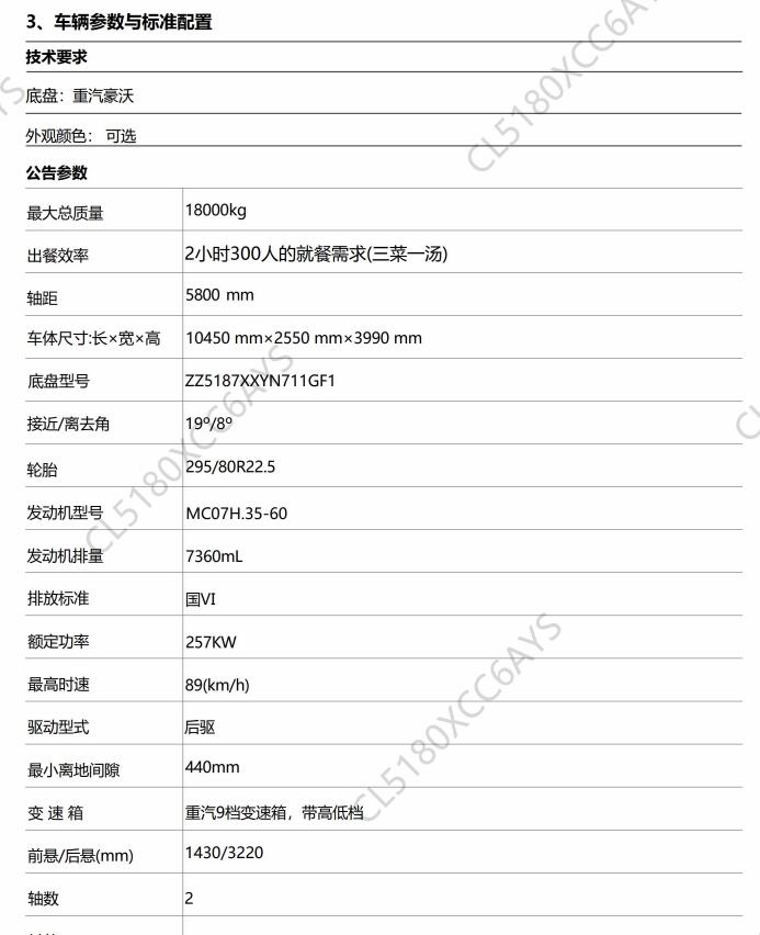 重汽豪沃炊事保障车