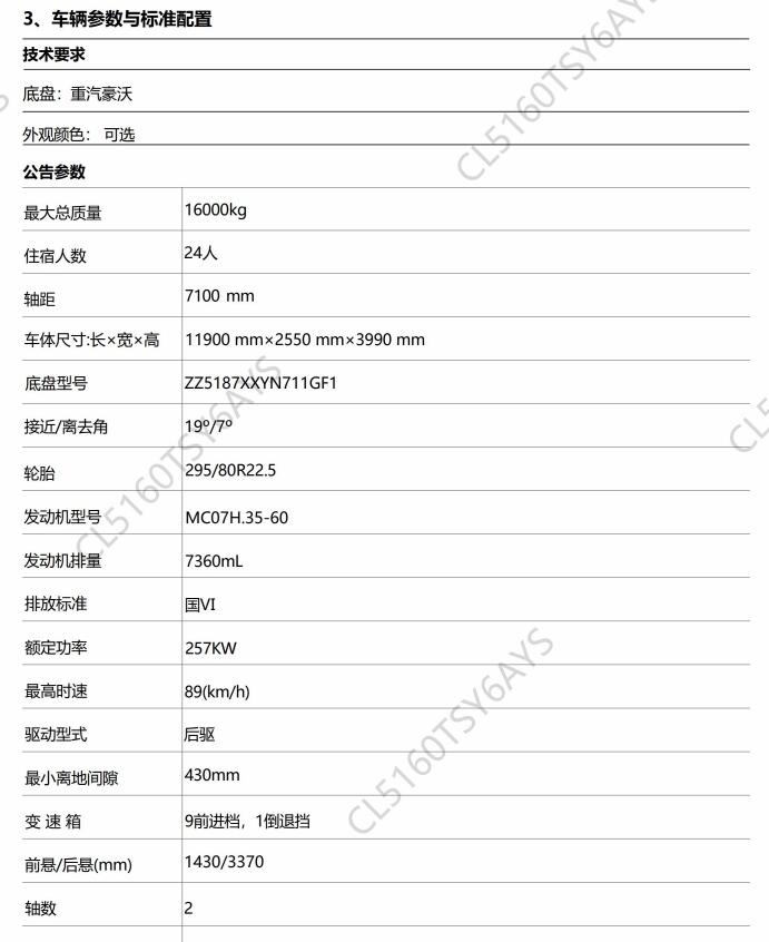重汽豪沃24人宿营车
